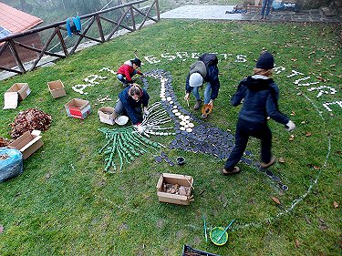 di adulti e bambini è stato realizzato un enorme logo del Parco,